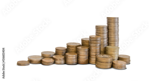 Large group of shiny piles of coins
