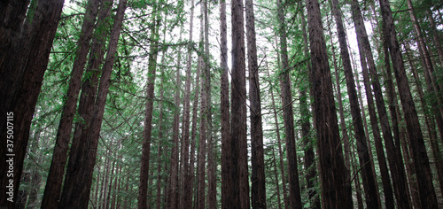 Large grove of very tall redwood trees