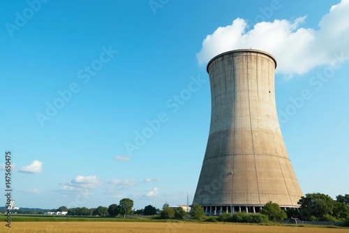 Large industrial cooling tower against a clear blue sky Industrial infrastructure, energy production, heat dissipation , heat, sustainability