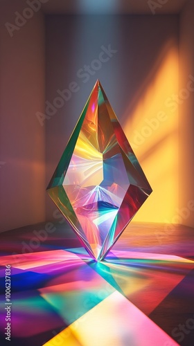 diamond, iridescent, colourful, light, beam, room, wooden, floor, crystal, prism, refraction, spectrum, rainbow, abstract, background, bright, colours, design, energy, geometric, glasses, glow, holographic, modern, neon, optical, pattern, shape, shine