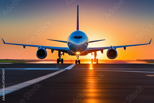 aeroplane, jetliner, aerodrome, runway, aircraft, parked, waiting, departure, tarmac, light, building, transportation, travel, aviation, commercial, flying, flight, journey, take-off, landing, wing, fuselage, engine, tail, window, passenger, cargo, crew, destination, international, domestic, gate, arrival, departure, control tower, boarding, service, generative, ai