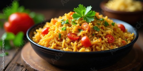 Large karahi overflowing with vibrant vegetable biryani, homemade, biryani