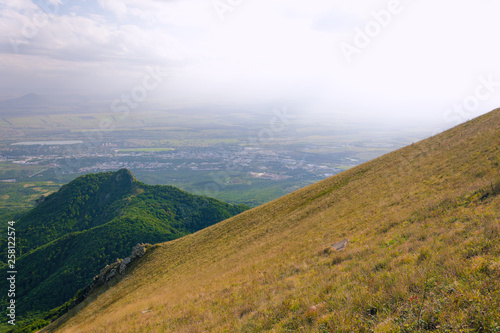 Large panorama view from the mountain Beshtau, summer sunny day near Pyatigorsk