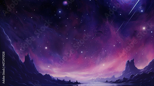 large purple starscape with sparse shooting stars. AI generative