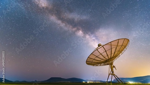 Large satellite dish against a night sky with milkyway