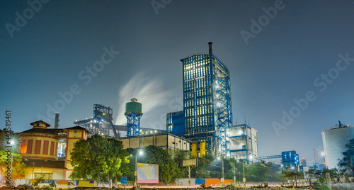 Large Steel plant with the chimney at night from Jamshedpur, Jharkhand, India