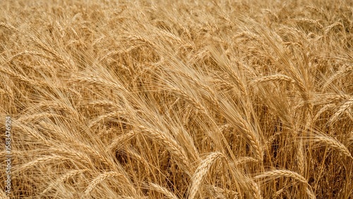 Large stretch of golden wheat gently waving in the seasonal breeze