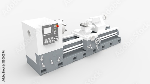 Lathe 3D rendering milling machine isolated in white studio background. Metal works