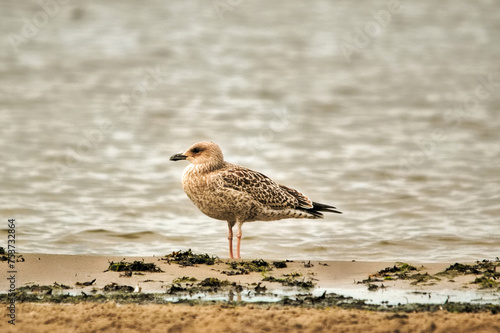 bird, gull, seagull, beach, sand, coast, alone, animal