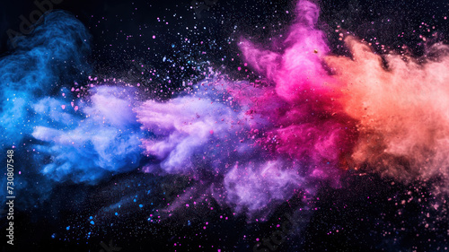 Launched colorful powder on black background