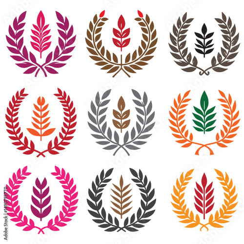 leaf, vector, award, decoration, signs, symbol, illustration, circle, design, chaplet, laurel, frame, icon, tree branch, medal, set, trophy, winner, element, floral, plant, pattern, ornate, silhouette, success, wheat, laurel wreath, certificate, gold, vintage, flower, border, champion, cut-out, insignia, no people, design element, achievement, anniversary, badge, crown, emblem, graphic, prize, victory, winning, olive