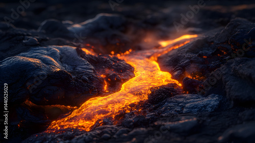 lava, cascading, rock, volcanic, river, fiery, molten, mountain, slope, eruption, intense, landscape, nature, rugged, wild, terrain, power, heat, energy