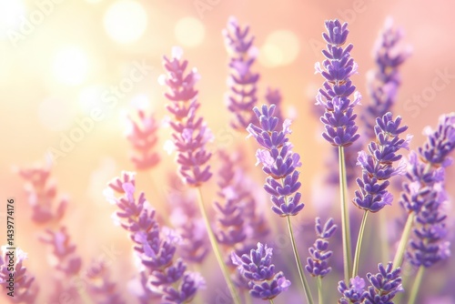 Lavender blossoms bathed in golden sunlight.