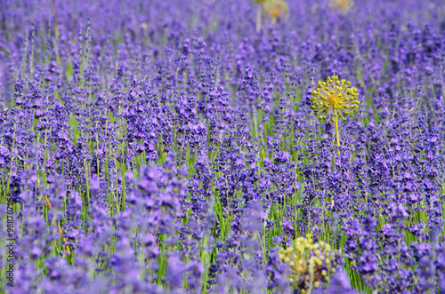 Lavender flowers on the surface of a lavender field.