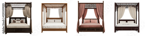 wood, bedchamber, furniture, bed, canopy, curtain, decor, interior, home, design, modern, luxury, elegant, romantic, cosy, comfortable, relaxation, rest, sleep, dream, style, upscale, exclusive, opulent, lavish, plush, opulent, ornate, regal, sophisticated, chic, contemporary, luxurious, refined, ornamental, decorative, architectural, detailed, carved, fretwork