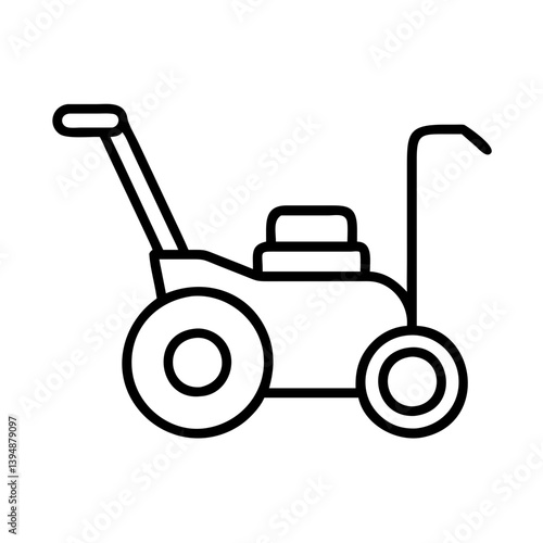 lawn mower, lawn, lawn mower, garden, gardening, equipment, landscaping, grass, cut, machine, tool, yard, vehicle, agriculture, work, trim, blade, power, wheel, handle, push, maintenance, spring, summer, icon, symbol, vector, illustration, outline, design, isolated, graphic, clip art, drawing, style, simple, line, art, black, white, minimalist, modern, shape, object