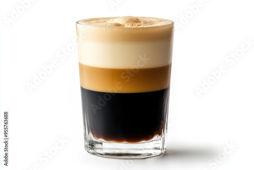 hot drink, drink, beverage, layered, glasses, tall, foam, creamy, frothy, brown, black, white, caffeine, espresso, milk, sugar, sweet, refreshing, iced, cold, liquid, cafes, bar, eatery, bistro, breakfast, brunch, afternoon, evening, refreshment, energy, promoting, delicious, aromatic, flavorful, cocktail, whiskey, crisp, wet, image, dynamic, modern, composition, celebration, froth