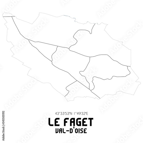 LE FAGET Val-d'Oise. Minimalistic street map with black and white lines.