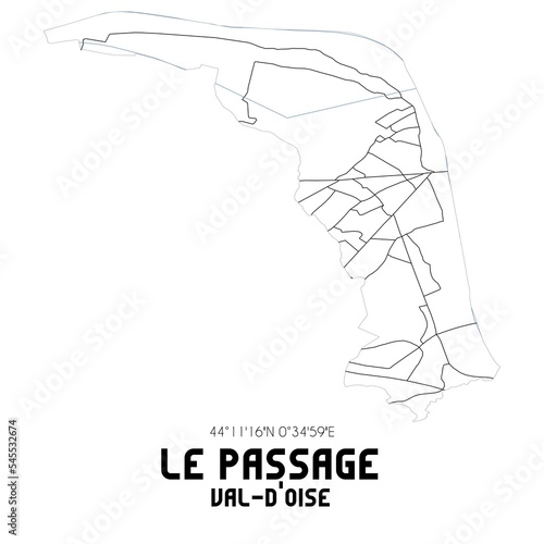 LE PASSAGE Val-d'Oise. Minimalistic street map with black and white lines.