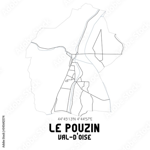 LE POUZIN Val-d'Oise. Minimalistic street map with black and white lines.