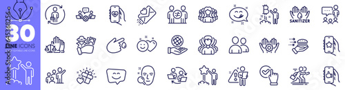 Leadership, Star and Food delivery line icons pack. People chatting, Face search, Group web icon. Women group, Replacement, Love letter pictogram. Fraud, Health app, Search employee. Vector