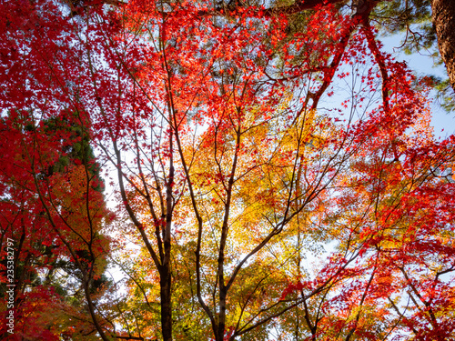 leaf changing colour to be pale yellow, orange red in autumn and fall, beautiful compost