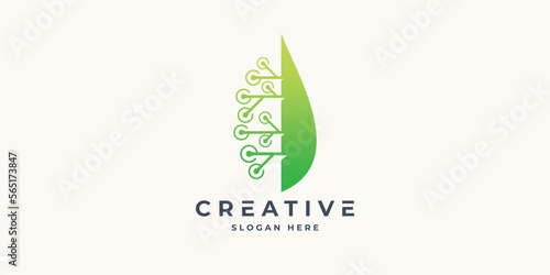 leaf technology logo design vector illustration. Suitable for business and technology logotype sign