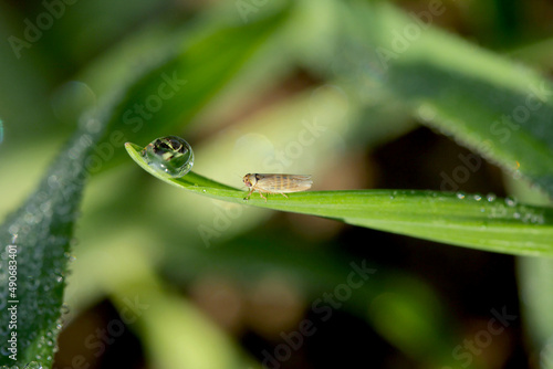 Leafhopper Macrosteles laevis on winter cereals. A leafhopper is the common name for any species from the family Cicadellidae - plant pest.