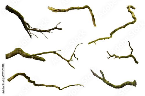 Leafless mossy branches isolated set on PNG background