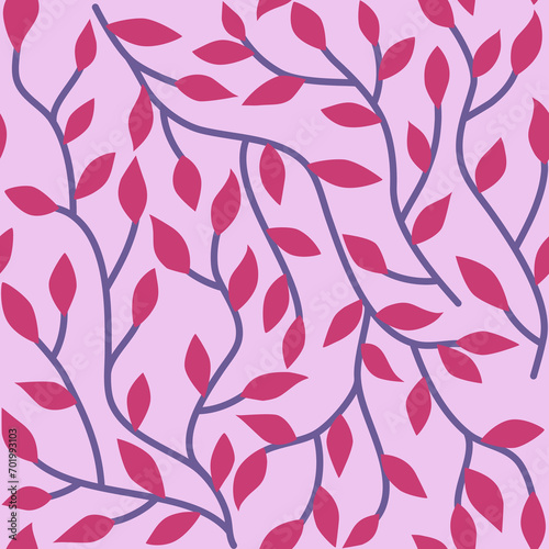 leaf, foliage, purple, pink, curved, tree, tree branch, leaf, pattern, seamless, wallpaper, floral, flower, decoration, nature, design, ornament, art, illustration, texture, plant, spring, textile, decor, fabric, garden, ornate, tile, flat, seamless pattern, sweet, isolated
