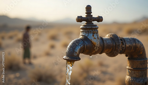 leaking, faucet, tap, dripping, droplet, water, drought, scarcity, shortage, crisis, dry, cracked, earth, dirtied, ground, desert, arid, climate, change, ecology, environment, thirsty, parched, survival, sunset, orange, sky, silhouette, fragile, vulnerable, exhaustion, conservation, resource, depletion, emergency