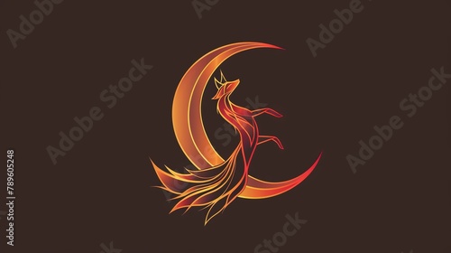 illustration, ai, background, wallpaper, fox, red, moon, crescent, hopping, running, majestic, fire, flames, leaping, logotype, intricate, set, silhouette, vector, design, cartoon, fantasy, signs, tail, symbol, animal, tattoo, art, nature, icon, tribal, drawing, decoration, pattern, colours, black, orange, burning, gold, element, mythology, shape, colourful, circle, yellow, swirl, spiral, flames, card