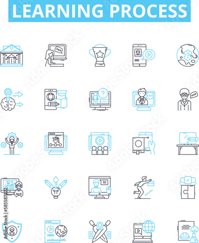 Learning process vector line icons set. Knowledge, Education, Instruction, Acquisition, Training, Comprehension, Drills illustration outline concept symbols and signs