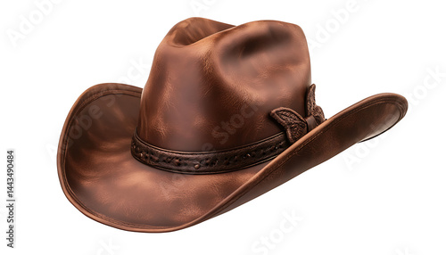 cowboy hat, western, hat, brown, leather, headwear, fashion, country, style, clothing, apparel, accessory, traditional, isolated, cut-out, studio shot, nobody, design element, vintage, rodeo, wild west, american, old west, texas, southwestern, rustic