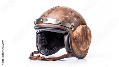 leather dirty vintage helmet over white background.