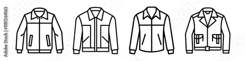 leather jacket icon, dress line art, dress vector - simple black line art icon of leather jacket perfect for logos, and dress-themed designs.