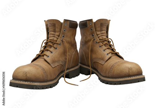 boot, leather, footwear, work, lace, brown, shoe, pair, rugged, apparel, clothing, style, fashion, wear, gear, protection, safety, outdoors, equipment, foot, male, female, design, vintage, classic, retro, material, texture, stitching, transparent, background