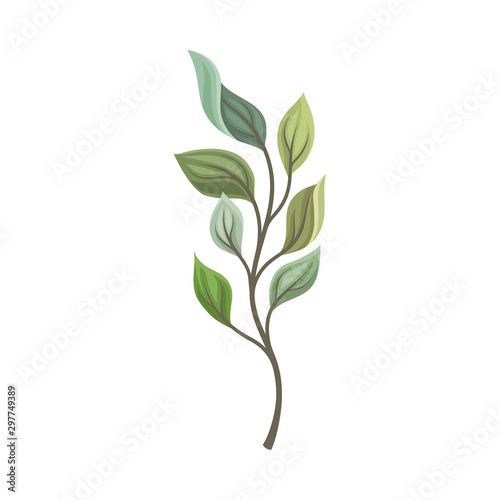 Leaves of different shades on a thin stalk. Vector illustration on a white background.