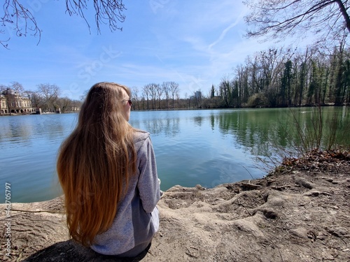 woman, see, water, flux, nature, summer, beauty, outdoors, person, people, sitting, children, forest, boy, relaxing, park, countryside, recreation, dress, teenage, hair, fish, blue, heaven, beach