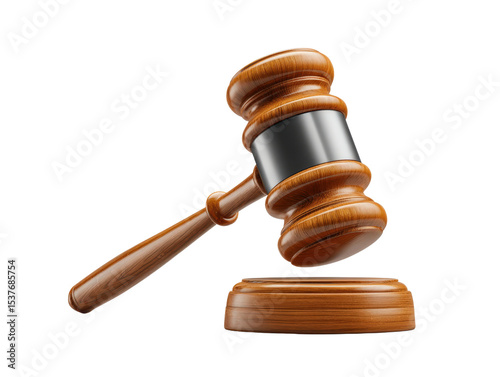 Legal icon in justice system, hammer used in law courts, isolated on a Transparent background, PNG file.