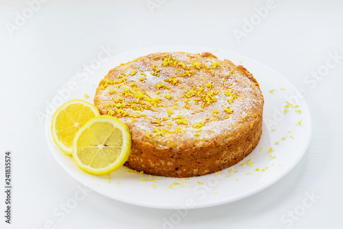Lemon pie on a white plate