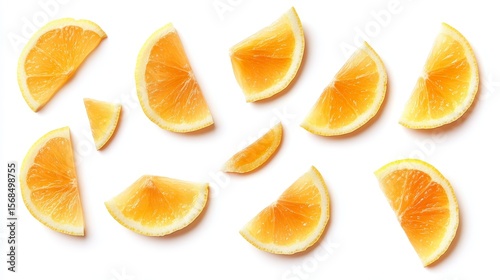 Lemon slices isolated on white background, seen from above.