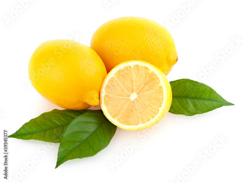lemon, fruit, citric, citrous, isolated, colours, colourful, diet, eat, food, fresh, green, health, healthy, ill, disease, juice, juicy, natural, orange, overload, refreshing, seasonal, sour, succulent, sweet, three, vitamin, white, yellow, slice, half, leaf