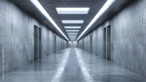 hallway, long, light, concrete, wall, distance, bright, modern, empty, room, corridor, interior, architecture, perspective, vanishing point, illuminated, structure, design, industrial, fixture, minimalist, roomy, passage, narrow, straight, linear, minimalism, luminance, distant, perspective, long distance, pathway