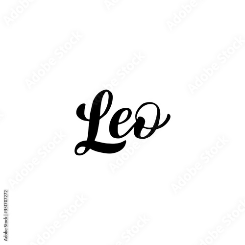 Leo zodiac font lettering. Handwritten black typography text. Astrology sign card isolated design. Vector eps 10.