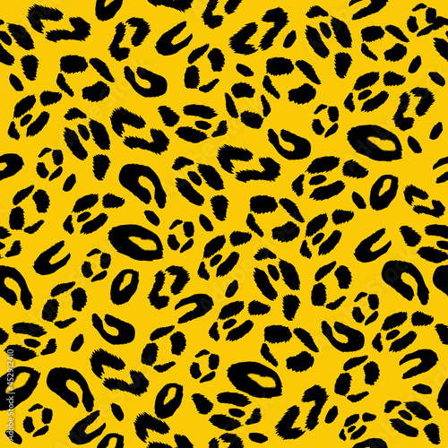 Leopard print seamless pattern. Vector illustration on yellow background