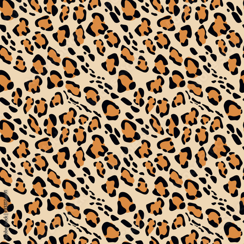 Leopard skin seamless pattern. Vector texture background. Classic trendy print. Design for home textiles, interiors, linens, cotton fabric, wrapping paper.
