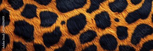 Leopard skin texture with copy space. Close-up leopard pattern. Big Cat fur. Leopard spots. Realistic leopard skin. Leopard design texture. Detailed leopard skin close-up. Wild Animal texture.