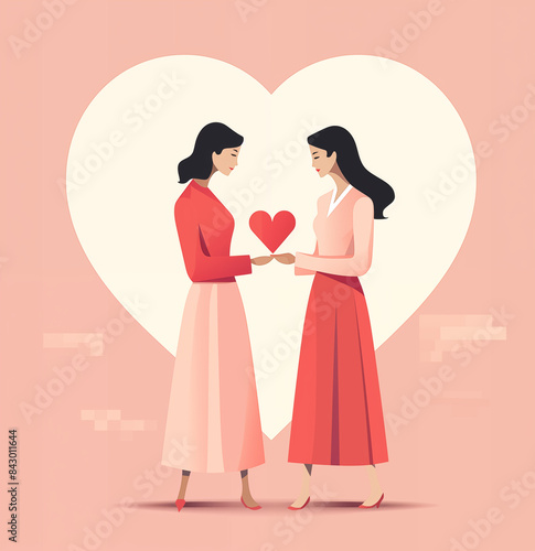 lesbian, two women in love, vintage style, LGBTQ, rainbow, pride month