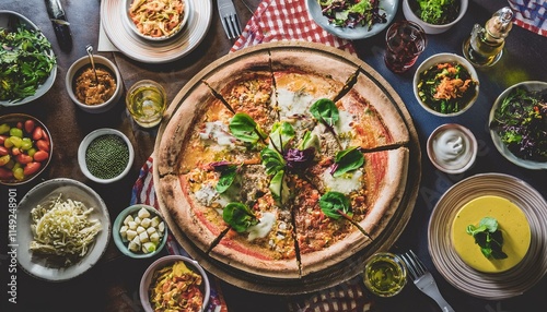 pizza, view, cheese, slice, crust, design, colours, favor, presentation, art, layer, symmetry, arrangement, party, culinary, creativity, beauty, inspection, angle, appreciation, indulgence, dream, charme, satisfaction, life events, exploration, inspiration, optical, feast, attracted, masterpiece, magic, shape, pie, detail, aesthetic, joy, favor, shine, allure, capture, delight